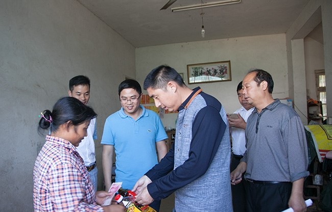 一同前往的還有岳西駐無錫流動黨支部書記胡田廣、姚有志、副會長王軍、聶仲文、程天照、儲德鋒等。扶貧第一站來到了冶溪鎮,冶溪鎮被稱之為“大別山中的小江南”風景秀麗,魚米之鄉。但這里山區道路崎嶇,經濟一直沒得到很好的發展,山區的貧苦戶生活還是很艱難,沒有收入。無錫勝維股份有限公司總經理胡楊生在創業初期就曾說道:“努力讓我們勝維變得強大,讓更多的人得到勝維的幫助,感受到勝維的愛心。”在冶溪鎮相關領導的帶領下,共走訪了貧苦家庭,真切的感受山區貧困家庭生活不易。后在縣招商局領導的陪同下,驅車一百多公里山路前往主簿鎮,在鎮領導的帶領下,看望了92歲的貧困女黨員儲德芬、胡楊生總經理與老人親切交談、詳細詢問了老人的身體和生活情況、并帶給老人急需的生活用品、老黨員感動不已、一度熱淚盈眶。此次分別向20戶貧困家庭共捐贈2萬元人民幣,善款來源岳西在無錫老鄉自發籌集,代表岳西在無錫老鄉的一片愛心,讓愛心在這片紅色土地上傳遞,并告訴他們貧困不怕,要堅信生活會更加美好的,努力學習、勤勞致富。