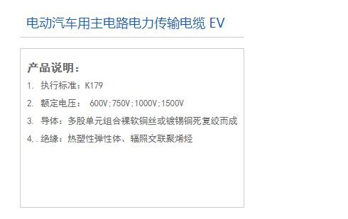 產品特性: 具有傳輸電流大容量、耐高壓、耐高溫、高柔軟、耐油等特性